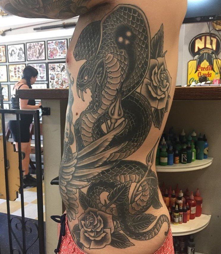 Brandon has been tattooing professionally for 15 years. He specializes in a number of tattoo styles, focusing on traditional American motifs, black and grey realism, and creating one-of-a-kind custom designs. No project is too large or too small for Branden - he loves them all. Check him out on Instagram.